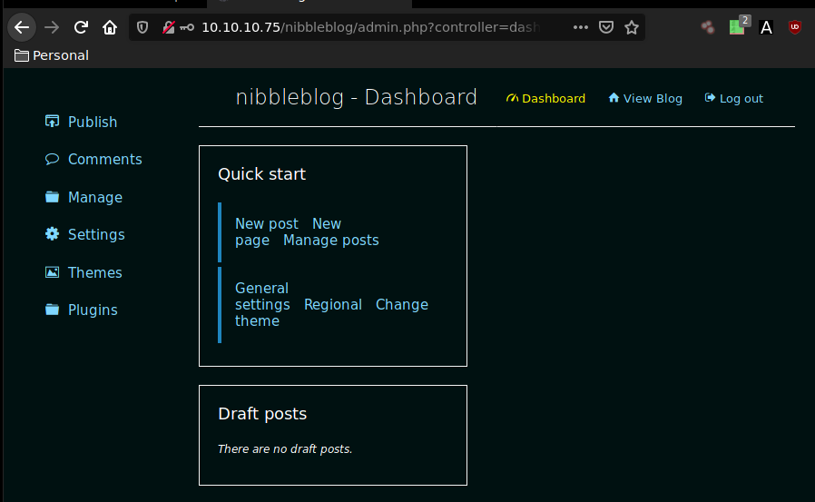 + http://10.10.10.75/nibbleblog/admin.php (CODE:200|SIZE:1401)