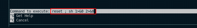 Command to execute: reset; sh 1>&0 2>&0# id