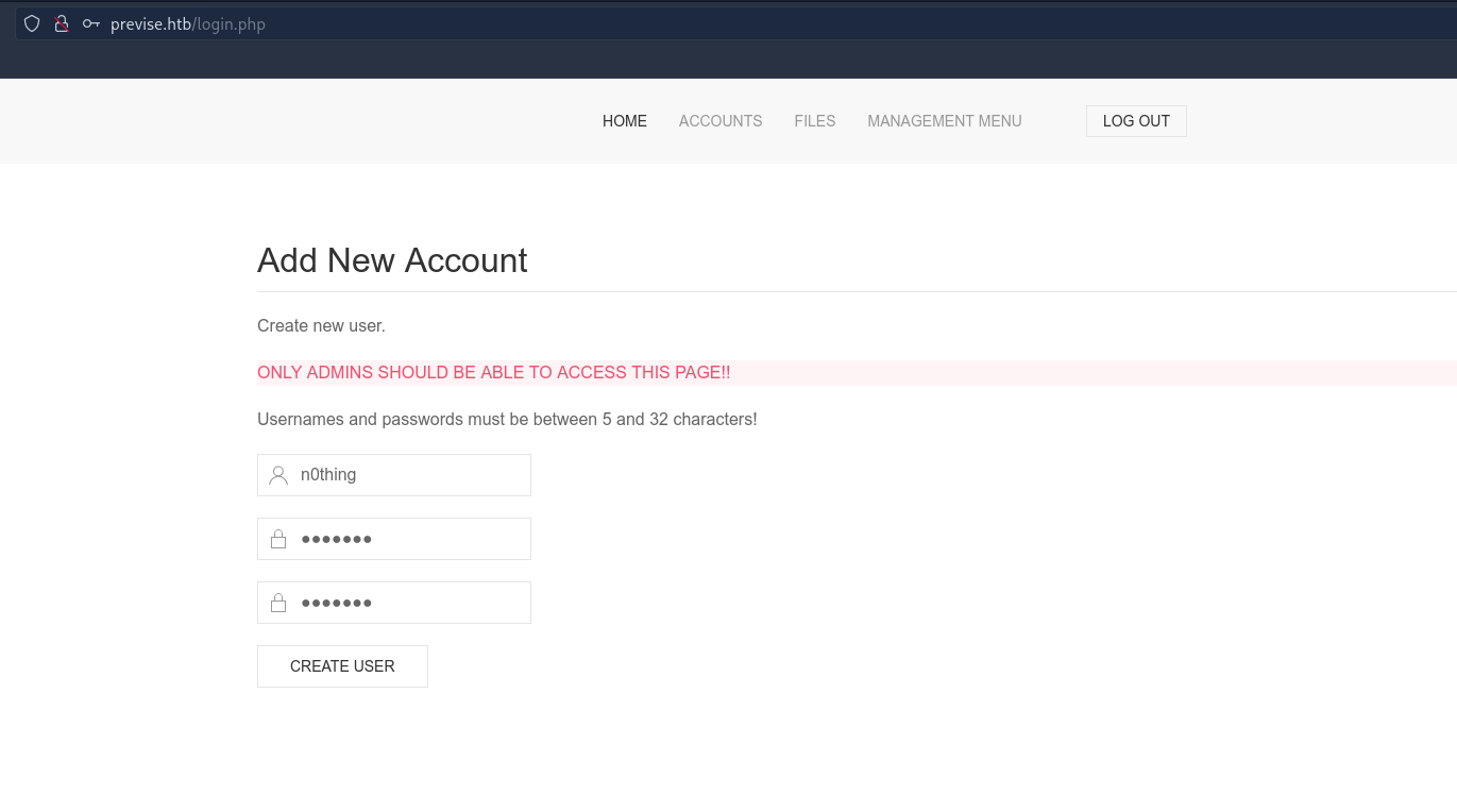 Warning: Permanently added 'previse.htb' (ED25519) to the list of known hosts.