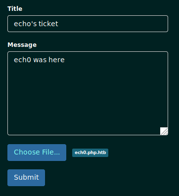 let's see if we can upload our ticket, therefore uploading our malicious disguised php file.