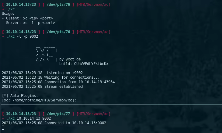 xc is an alternative improvement to the netcat utility that was made by xct one of the top hackthebox users, it was written in golang and allows for a whole range of options like uploading, downloading, port local/remote port forwarding, or just spawning a shell on the remote server.