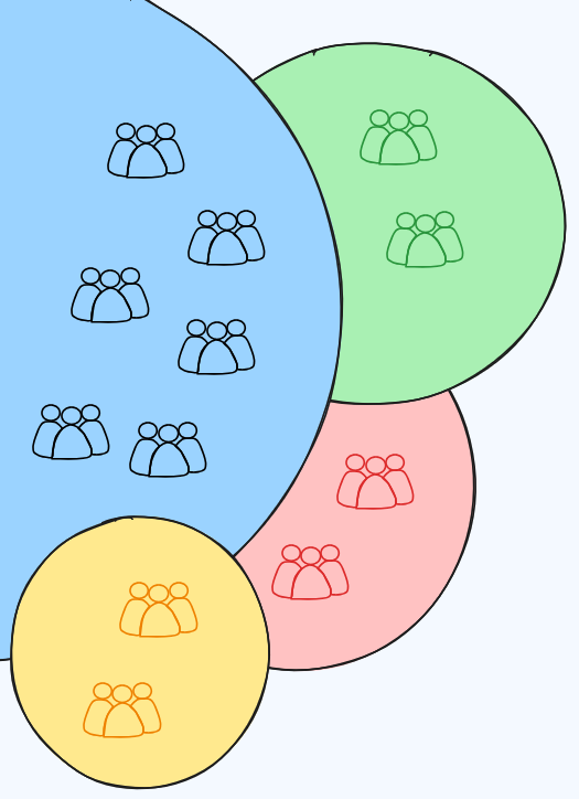 However, in the right image, the groups are transparent and people are distinct. You can see the people in each overlapping and, with the combined information that you are part of all four groups, they can easily deanonymize you in the very small overlapping.