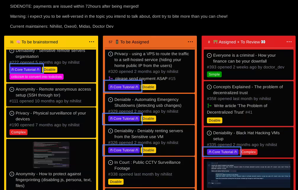 Those are the tutorials which are the most important for our Opsec Bible. Thus, if you are contributing or updating them, you will get 2x payment.