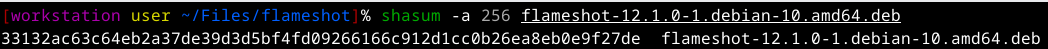 shasum -a 256 flameshot-12.1.0-1.debian-10.amd64.deb(software file)
