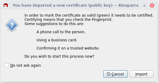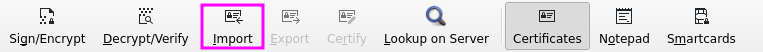Now let's import the script using Kleopatra, in the nav bar you can see an import, press it.