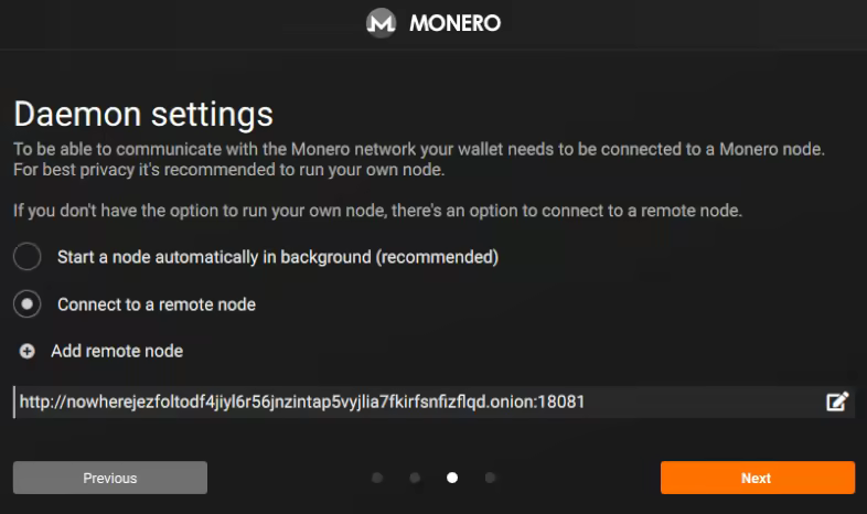 Finally, he selects a node for the connection. Connecting to your own node is recommended but in this example we will use a remote node.
