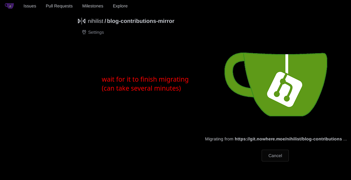 If it were to get taken down for whatever reason, or if you decide to branch out and do your own thing with the blog, you can edit the repository to not be a mirror anymore (meaning you'll be able to push your own commits without going through me):