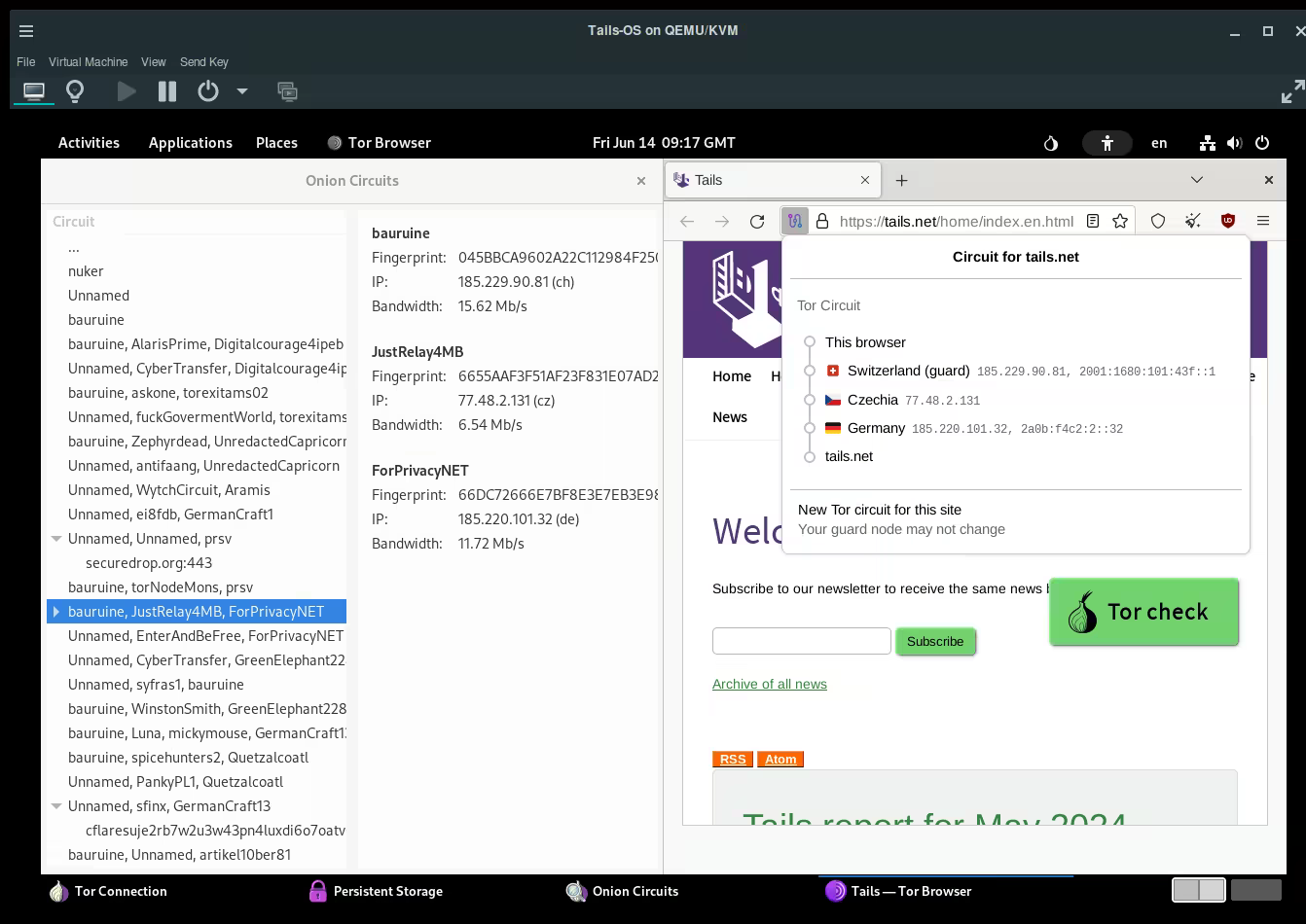 And that's it! We managed to run tails OS from a QEMU VM and install some software into the persistent storage.
