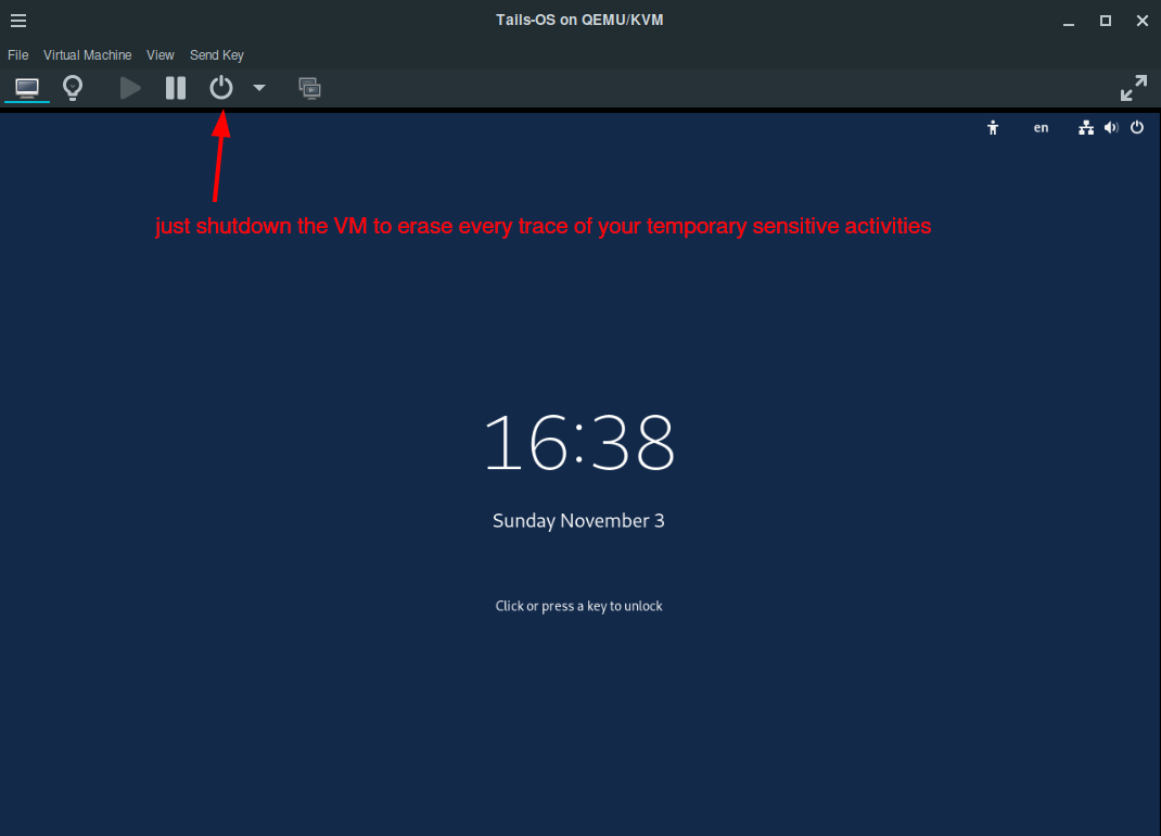 And If you have a Tails OS VM, you can simply hit the shutdown button to erase what you were doing in the VM: